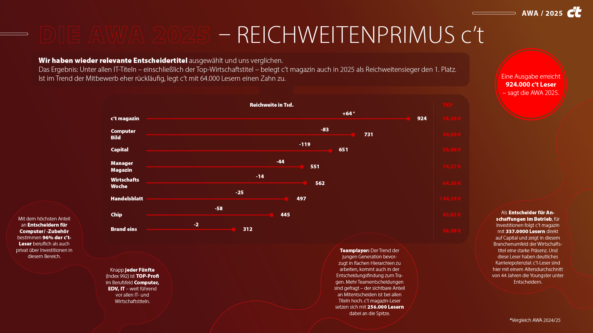 Das Ergebnis: Unter allen IT-Titeln – einschließlich der Top-Wirtschaftstitel – belegt c’t magazin auch in 2025 als Reichweitensieger den 1. Platz.