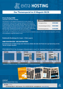 iX greift aktuelle Trends in der Informationstechnik auf und schaut hinter die Hypes. Tests und Erfahrungsberichte bieten eine Entscheidungshilfe für den Einsatz von Produkten und Dienstleistungen. iX leitet ihre Leser durch den zunehmend unübersichtlichen und sich ständig verändernden IT-Dschungel. Dabei steht unabhängiger, gründlich recherchierter und kritischer Fachjournalismus an erster Stelle. Die iX-Autoren sind selbst IT-Profis und schreiben aus der Praxis.